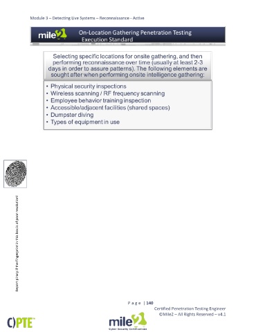 Module 3 – Detecting Live Systems – Reconnaissance - Active Report piracy if the fingerprint in this box is of poor resolution! P a g e | 140 Certified Penetration Testing Engineer ©Mile2 – All Rights Reserved – v4.1