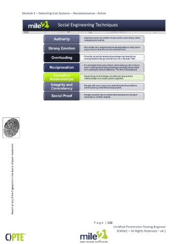 Module 3 – Detecting Live Systems – Reconnaissance - Active Report piracy if the fingerprint in this box is of poor resolution! P a g e | 142 Certified Penetration Testing Engineer ©Mile2 – All Rights Reserved – v4.1
