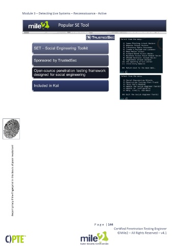 Module 3 – Detecting Live Systems – Reconnaissance - Active Report piracy if the fingerprint in this box is of poor resolution! P a g e | 144 Certified Penetration Testing Engineer ©Mile2 – All Rights Reserved – v4.1