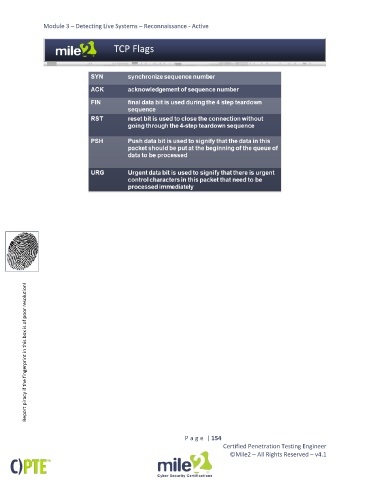 Module 3 – Detecting Live Systems – Reconnaissance - Active Report piracy if the fingerprint in this box is of poor resolution! P a g e | 154 Certified Penetration Testing Engineer ©Mile2 – All Rights Reserved – v4.1