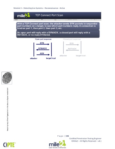 Module 3 – Detecting Live Systems – Reconnaissance - Active Report piracy if the fingerprint in this box is of poor resolution! P a g e | 156 Certified Penetration Testing Engineer ©Mile2 – All Rights Reserved – v4.1