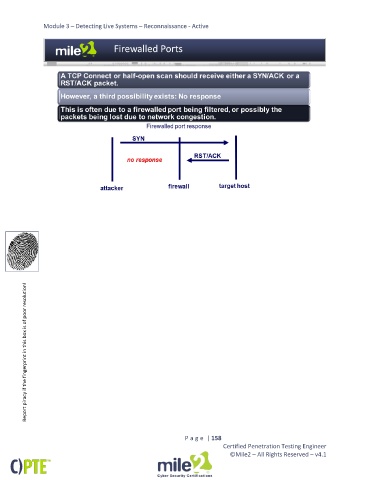 Module 3 – Detecting Live Systems – Reconnaissance - Active Report piracy if the fingerprint in this box is of poor resolution! P a g e | 158 Certified Penetration Testing Engineer ©Mile2 – All Rights Reserved – v4.1