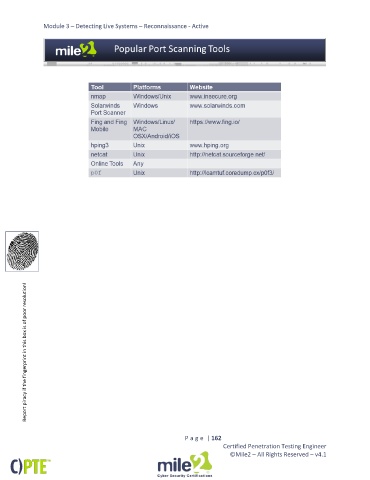 Module 3 – Detecting Live Systems – Reconnaissance - Active Report piracy if the fingerprint in this box is of poor resolution! P a g e | 162 Certified Penetration Testing Engineer ©Mile2 – All Rights Reserved – v4.1