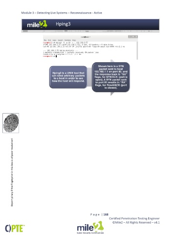 Module 3 – Detecting Live Systems – Reconnaissance - Active Report piracy if the fingerprint in this box is of poor resolution! P a g e | 168 Certified Penetration Testing Engineer ©Mile2 – All Rights Reserved – v4.1