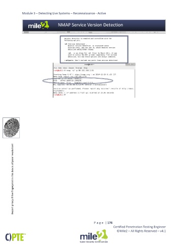 Module 3 – Detecting Live Systems – Reconnaissance - Active Report piracy if the fingerprint in this box is of poor resolution! P a g e | 176 Certified Penetration Testing Engineer ©Mile2 – All Rights Reserved – v4.1