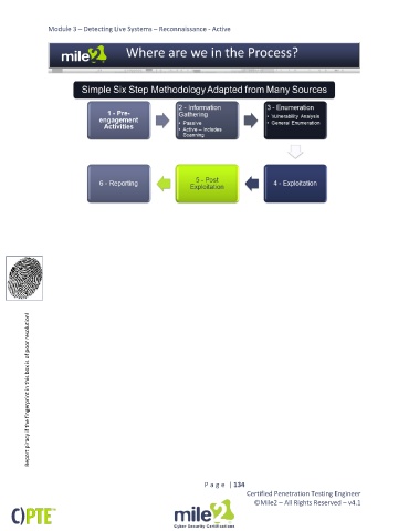 Module 3 – Detecting Live Systems – Reconnaissance - Active Report piracy if the fingerprint in this box is of poor resolution! P a g e | 134 Certified Penetration Testing Engineer ©Mile2 – All Rights Reserved – v4.1