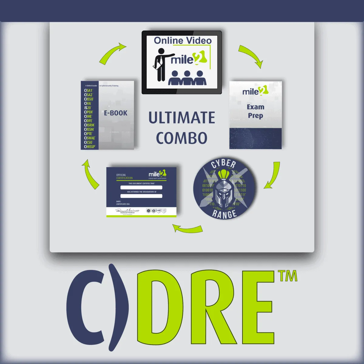 • One Year Online Course Access • Videos • Workbook • Lab Guide • Cyber Range Access • Exam Prep Guide (2 Weeks) • Practice Quiz • Certification Exam (2 Attempts)